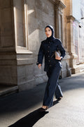 Complément idéal de la veste en jean , ce pantalon en jean à jambes larges allie confort décontracté et confection soignée. Sa coupe ample offre une grande liberté de mouvement et crée une allure à la fois décontractée et élégante. Les surpiqûres marron apportent une touche chaleureuse et soulignent la qualité de la fabrication. Les poches pratiques sont fonctionnelles, tandis que le bouton argenté crée un contraste subtil et moderne.