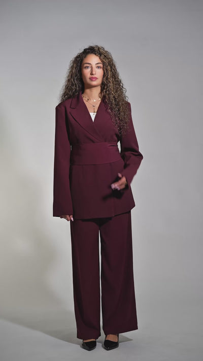 le blazer ceinturé noble - bordeaux