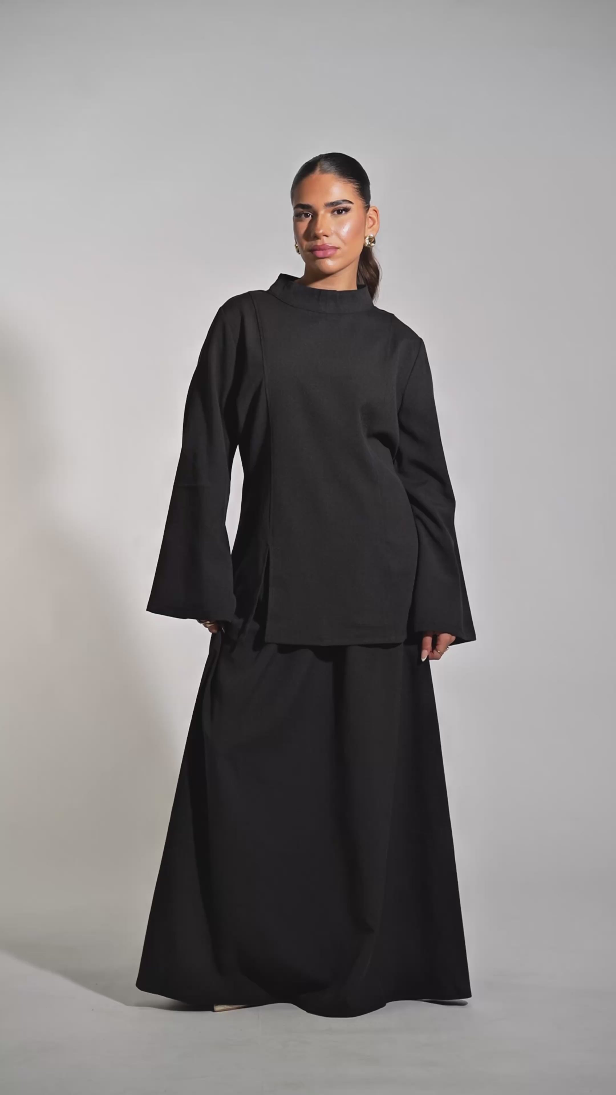 Une touche de noblesse viennoise revisitée : cet ensemble en lin raffiné allie une élégance intemporelle à une légèreté luxueuse. Le corsage, aux manches trompette fluides et à la délicate fermeture à nouer dans le dos, flatte la silhouette, tandis que la jupe assortie se distingue par ses lignes épurées et son raffinement discret. Un ensemble pour une présence affirmée, inspiré par la splendeur de la ville impériale.